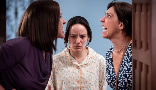 | Livia Brito, Azela Robinson e María Penella em cena chave da telenovela 'Mujer de Nadie'. Créditos: TelevisaUnivision |
